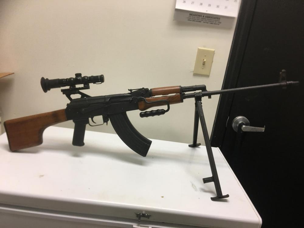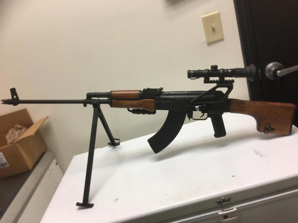 There are numerous Russian manufacturing stampings including Russian selector markings and numbers on the firearm and pictures are provided. The registered serial number on the receiver with NFA is 11212-IAC. The number KB8683K is also on the firearm and one that is on the receiver, bolt, bolt head, barrel (chromed bore), wooden forearm and may be on other parts as well. This rifle also includes the original cleaning rod. The wooden forearm has what appears to be a battlefield repair with pins to strengthen it. Some U.S. soldier obviously went to a lot of trouble to get the rifle back to the states and then someone registered it in 1968 during the 30-day amnesty. Firearm includes a newly made East German Soviet Magazine that is constructed in the same original manner as the magazine for this rifle in the 1950's.