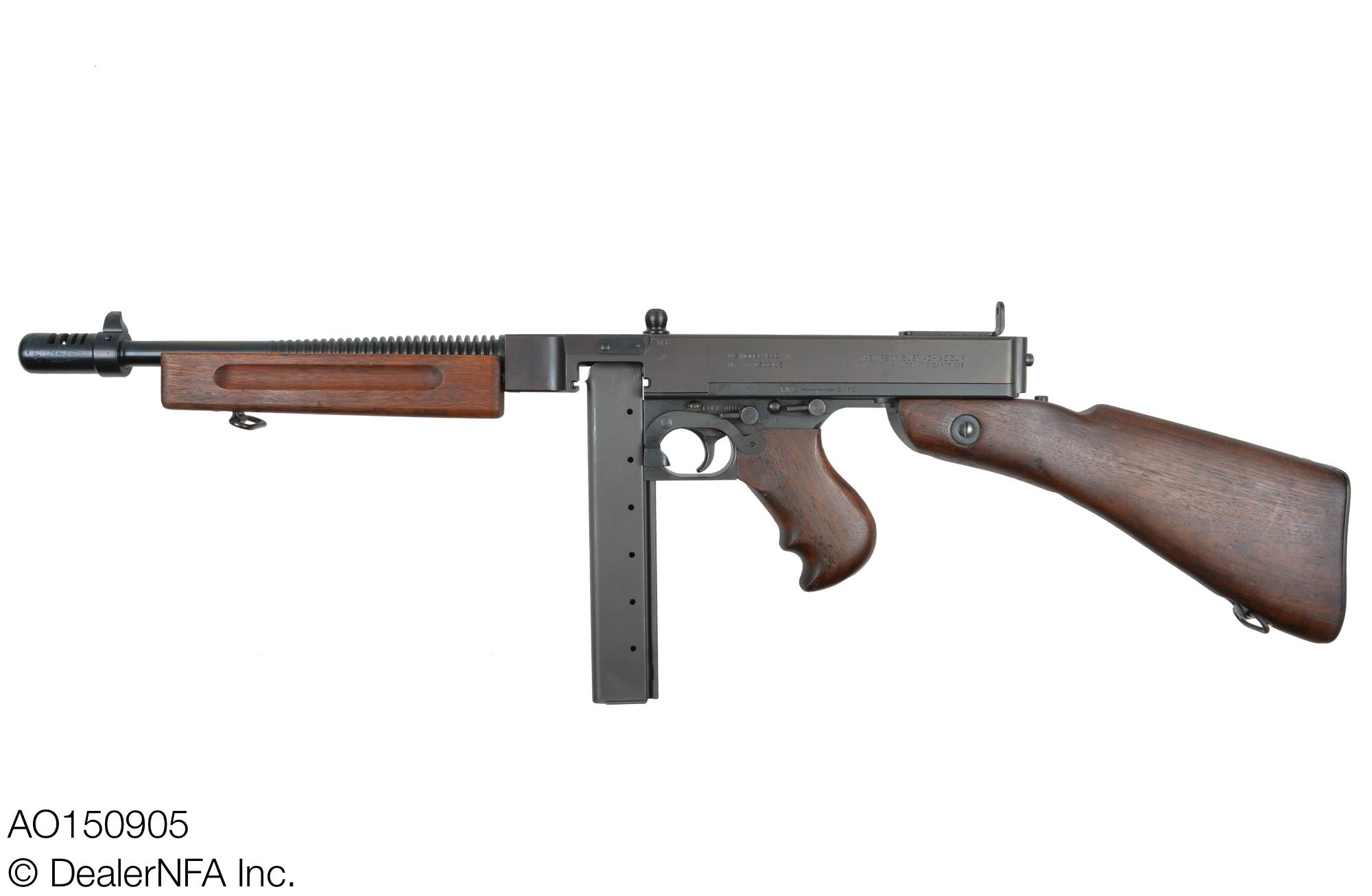 Ruben Mendiola Posted December 5, 2019 Report Share Posted December 5, 2019 A0150905 Auto-Ordnance M1928A1 Thompson Serial Number 150905 We have the following transferable M1928A1 Thompson Submachine Gun, manufactured by Auto-Ordnance in Bridgeport, CT, serial number 150905 available for sale. This Thompson has been refinished, possibly during an arsenal rebuild or later in its life. It was probably manufactured in the Spring of 1942, just before the weapon was reclassified as “Limited Standard,” and replaced by the M1 Thompson. This conclusion is based on the serial number, and inspector marking. The receiver nose has been prick-punched to indicate a barrel replacement, and the replacement barrel was manufactured by Savage, and has a blued finish. The weapon features an unprotected, early style Lyman "L" sight, which was standard after about the 80,000 serial number range, according to Frank Iannamico’s excellent book, American Thunder, Third Edition. The weapon currently has a horizontal foregrip installed, as it did when originally manufactured, but it also comes with an original vertical foregrip. The left side of the receiver is stamped with an Ordnance wheel marking, as well as a "WB" inspector stamp, indicating it was inspected under the supervision of Army Inspector of Ordnance Col. Waldemar S. Broberg, who was Army Inspector of Ordnance for the Springfield Ordnance District from July 1941 to June 16, 1942. The trigger frame serial number on this Thompson matches the receiver. The actuator is the later type, manufactured by Savage. The Blish lock and bolt are also of Savage manufacture. The compensator is a 4th type, consistent with those installed on military M1928A1 Thompsons. The picture of the vertical foregrip by itself has a buffer disk shown on the bolt. This very nice overall condition M1928A1 Thompson would be an excellent shooter and/or collector piece for the new collector, or for someone who wants to expand their collection to include a Bridgeport manufactured Thompson Submachine Gun. SOLD As with all DealerNFA, Inc. guns, this item is owned by us, and in stock at our Miami office, where it is available for inspection or eForm transfer to a dealer in your state. Dealernfa, Inc Ruben Mendiola President For the quickest response, please contact us through our toll free number 7 days a week, from 8:00 AM to 9:00 PM EST, or by email: ruben@dealernfa.com 305-271-3436 866-NFA-WANT (866-632-9268) Toll Free 866-415-7066 Toll Free Fax Please visit our website for more detailed images that can be magnified at: | www.dealernfa.com | Facebook | Instagram | We are dealers and not Brokers. All firearms are in stock under our control and owned by DealerNFA, Inc With over 30 years in the Class III business, dealing in high quality legal firearms is not a hobby, but a profession - you will receive well deserved fast professional service. We are always looking for and paying top dollar for high quality legally registered machine gun, please either call me our my Toll Free line, email or fax. DealerNFA, Inc. pays the ATF transfer tax and payment is sent overnight. Florida residents are subject to Florida Sales tax. Link to comment Share on other sites More sharing options...