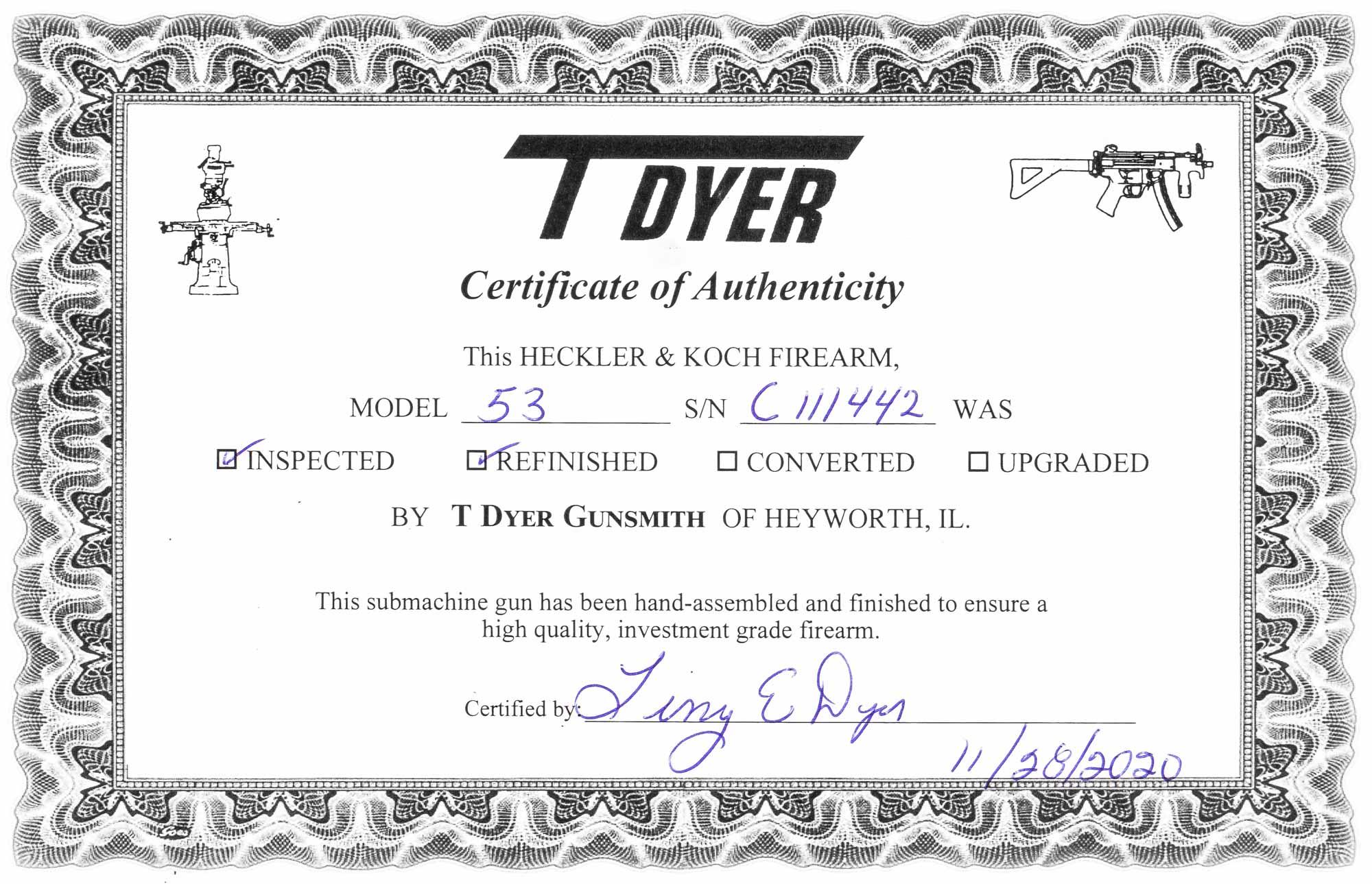 Ruben Mendiola Posted March 5, 2021 Report Share Posted March 5, 2021 C111442 HK 53A2, .5.56mm, Pre-May Machine Gun Registered as a Selective Fire Machine, Safe-Semi-Full and Totally Upgraded by Mr. Terry Dyer. In Excellent Condition Pre-May Sales Sample are only available to FFL & SOT Dealers ONLY SOLD Gun is in Excellent Condition SEF Trigger Group, Original Magazine and Magazine Paddle Release, Correctly Stamped & HK Magazines. Like everything we sell, In Stock and Ready to eForm to your Dealer and available for your inspection in our office in Miami, FL. This gun has been recently serviced by Terry Dyer using our standard work order of “Make it Right”. What this means to you, is that once you receive your gun, you will be able to go out and enjoy it to its fullest (or stick it in the safe, knowing it is ready to go), because no expense has been spared in making sure it runs to its full potential. The checklist that each gun received includes the following • Complete visual inspection • Initial test firing for function and safety • Re-engraving of model when applicable • As necessary, strip the gun to bare metal, parkerize the base metal to act as a primer to promote better paint adhesion, and finally apply a special 3 part paint to bring the gun back to better than factory appearance • Verify headspace, timing, check bolt, extractor, etc. • Modify for a magazine paddle release when needed • Install the proper trigger housing • Final test firing and cleaning There is a long waiting list for any good HK smith to properly inspect and upgrade a HK product – we have taken that worry and wait out of the equation so we can offer the finest HKs on the market. As with all DealerNFA, Inc. guns, this item is owned by us, and is in stock at our Miami office, where it is available for inspection or eForm transfer to a dealer in your state. HK – In a world of compromise, DealerNFA doesn't. As with all DealerNFA, Inc. guns, this item is owned by us, and in stock at our Miami office, where it is available for inspection or eForm transfer to a dealer in your state. Dealernfa, Inc Ruben Mendiola President For the quickest response, please contact us through our toll free number 7 days a week, from 8:00 AM to 9:00 PM EST, or by email: ruben@dealernfa.com 305-271-3436 866-NFA-WANT (866-632-9268) Toll Free 866-415-7066 Toll Free Fax Please visit our website for more detailed images that can be magnified at: | www.dealernfa.com | Facebook | Instagram | We are dealers and not Brokers. All firearms are in stock under our control and owned by DealerNFA, Inc With over 30 years in the Class III business, dealing in high quality legal firearms is not a hobby, but a profession - you will receive well deserved fast professional service. We are always looking for and paying top dollar for high quality legally registered machine gun, please either call me our my Toll Free line, email or fax. DealerNFA, Inc. pays the ATF transfer tax and payment is sent overnight. Florida residents are subject to Florida Sales tax. Link to comment Share on other sites More sharing options...