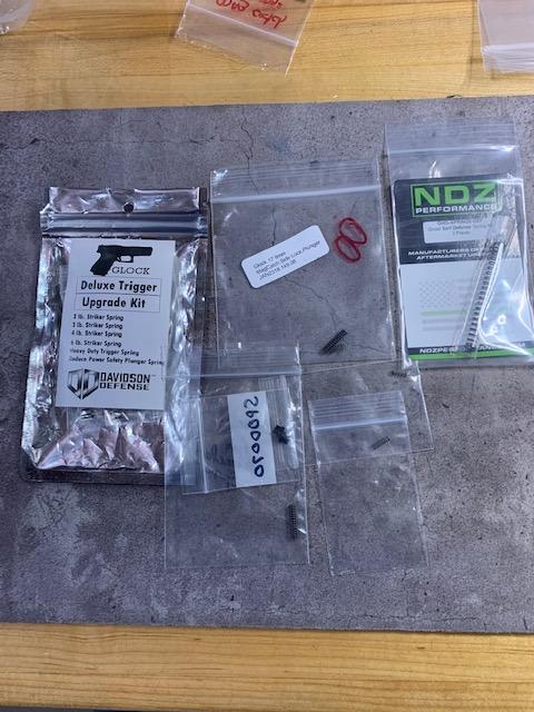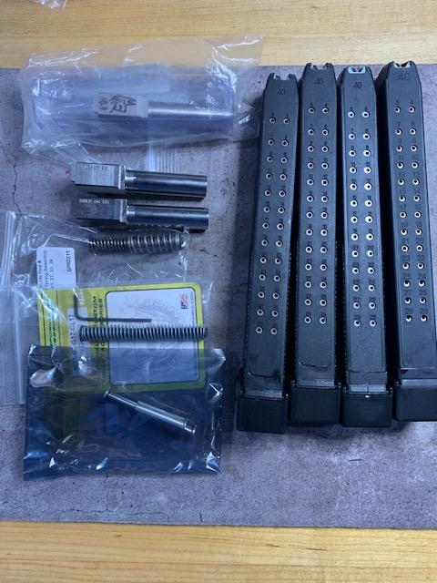 Charles in Lancaster PA Posted April 5, 2021 Report Share Posted April 5, 2021 For sale as a lot: 1. 4x aftermarket 29 round glock 40 s&w mags 2. 2x 9mm stainless barrels (mod 26) 3. 1x 9mm lone wolf barrels (small, mod 26 4. 2x small (mod 26) size recoil assy 5. 1x model 17 recoil assy 6. 2x trigger housing (.40 / .357) 7. misc pins (see pix) 8. Misc springs (see pic) 9. whatever else is in the picx! $450 shipped CONUS Link to comment Share on other sites More sharing options...