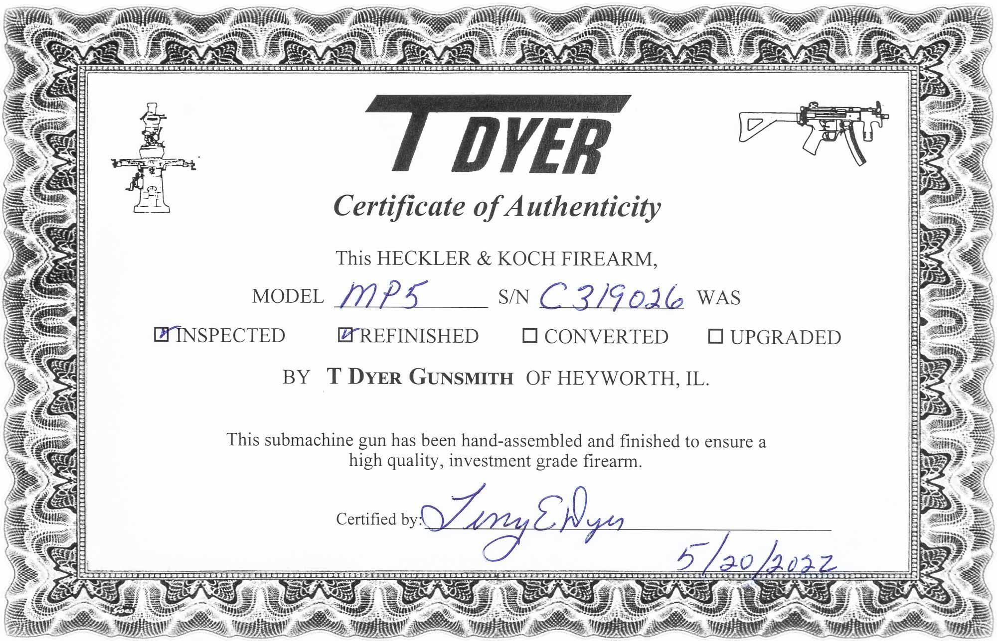 Ruben Mendiola Posted June 9, 2023 Report Share Posted June 9, 2023 C319026 MP5A3, Pre-May Sales Sample with 4 Position Trigger Group, with Trijicon Light and Original Magazine. Tested and Upgraded by Mr. Terry Dyer in Excellent Condition. Pre-May Sales Sample ONLY available to FFL & SOT Dealers. $26,995 - SOLD As with all DealerNFA, Inc. guns, this item is owned by us, and in stock at our Miami office, where it is available for inspection or eForm transfer to a dealer in your state. Dealernfa, Inc Ruben Mendiola President For the quickest response, please contact us through our toll free number 7 days a week, from 8:00 AM to 9:00 PM EST, or by email: ruben@dealernfa.com 305-271-3436 866-NFA-WANT (866-632-9268) Toll Free 866-415-7066 Toll Free Fax Please visit our website for more detailed images that can be magnified at: | www.dealernfa.com | We are dealers and not Brokers. All firearms are in stock under our control and owned by DealerNFA, Inc With over 30 years in the Class III business, dealing in high quality legal firearms is not a hobby, but a profession - you will receive well deserved fast professional service. We are always looking for and paying top dollar for high quality legally registered machine gun, please either call me our my Toll Free line, email or fax. DealerNFA, Inc. pays the ATF transfer tax and payment is sent overnight. Florida residents are subject to Florida Sales tax. Quote Link to comment Share on other sites More sharing options...