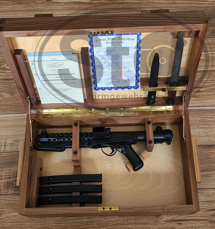 Greasegunner Posted November 9, 2023 Report Share Posted November 9, 2023 (edited) From The February Ad where I Bought it in Feb 2023 Just released from the Richard Winters estate (CPS CO. Monticello WI) a very limited number of British military spec Sterling L2A3 fully transferable submachine guns. These are new guns built on DLO tubes to a very high standard and have been test fired only. Richard made all the fixtures to create a very precise and authentic firearm. They are finished in the correct type smooth finish used on the military guns and are marked L2A3. These will include a beautiful hand crafted birch and walnut presentation case with accessories and certificate of authenticity as shown. 3 Mags and Sling Included The Wood Case is like a beautiful Piece of Furniture Will transfer on paper form 3 to your dealer. Price is 19900.00 plus actual cost shipping. I have never Fired it-Bought as Investment . Priced at what I paid It Will Go out On Form3 Edited November 19, 2023 by Greasegunner typo Link to comment Share on other sites More sharing options...