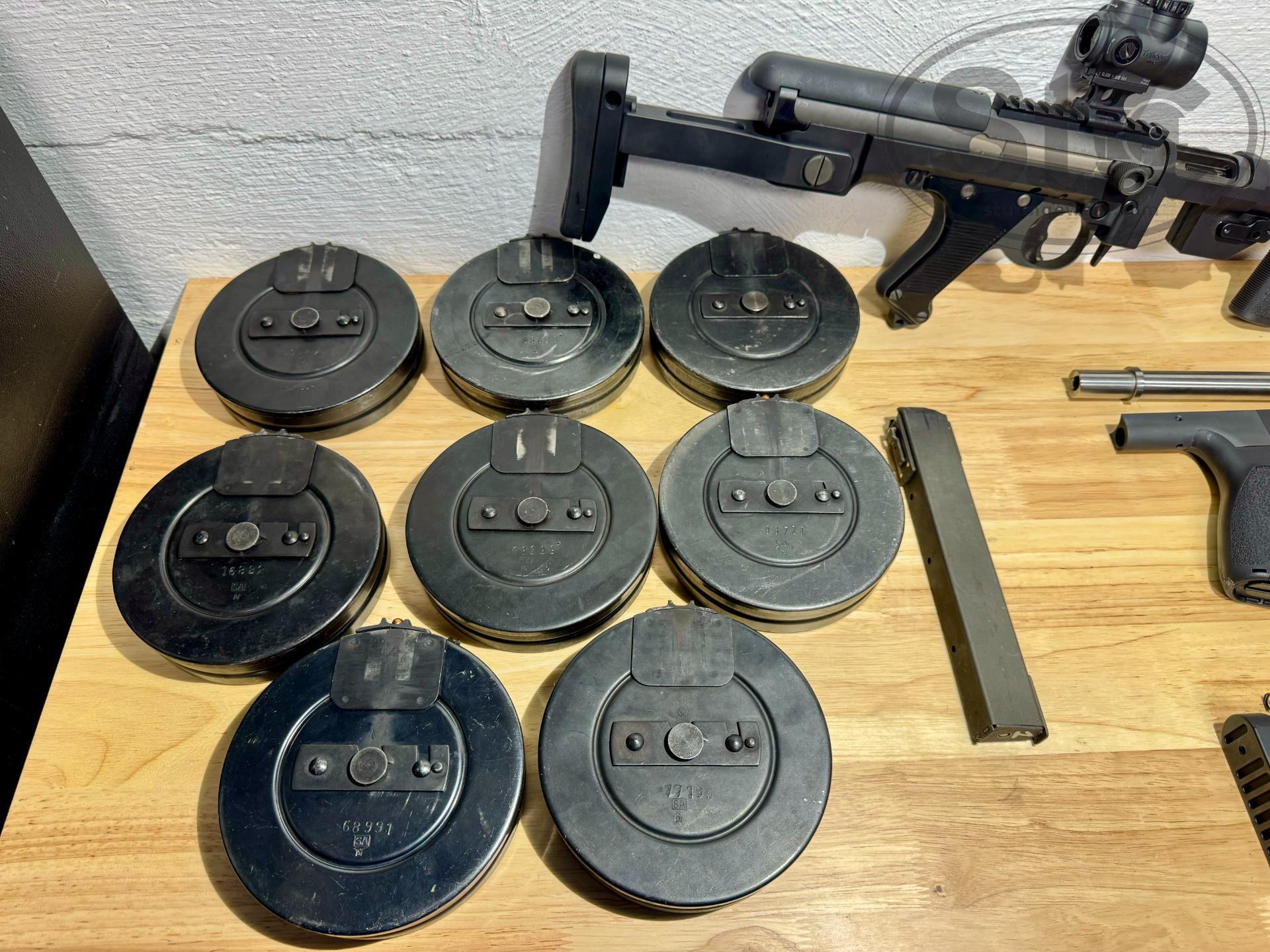 MonsterMan1036 Posted January 21 Report Share Posted January 21 (edited) My BRP STG with the 34k/U9 kits and the BRP 9mm suppressor are up for sale. The gun is built like a tank and has run flawlessly for me every time it has been out. I'm offering a pretty complete kit: some low-production mods, some spares, and more than enough mags. What's for sale: -34k kit with NiB Bolt (current setup) & complete U9 kit -BRP 9mm suppressor -Lovell Precision integrated take-down lever lock is equipped on both mag housings (mod) -Lovell Precision short hand guard and cut barrel (only 9 of these were made) -Custom 3-lug -Trijicon MRO -Mags- 8 drums, 12 coffins (with original 4 mag carrier and loader), and one stick mag (all are in good-very good condition; most of the coffins still have packing grease) -Spares- new 9" barrel, 2 recoil springs, standard bolt, buffer, handguard shim, manual -Transport case The gun and suppressor are on form 4's in Ohio. The price for the package is $24,000.00, and I will cover the first two stamps. The buyer is responsible for all shipping costs. Payment can be made via bank wire or cashier's check. If you would like more or specific photos, just let me know, and I can email/text them. https://www.dropbox.com/scl/fi/gaq70jp3479xglkgfbn97/Video-Jul-09-2016-11-14-43-AM.mov?rlkey=j0uz6e6suzqosncaeh82vxwey&st=rk32dcdf&dl=0 https://www.dropbox.com/scl/fi/xx9eazwtyc0ixsb8tv4zq/Video-Mar-17-2019-4-31-23-PM.mp4?rlkey=gpk084u898pckh9cqg738760x&st=l5ifskj4&dl=0 Edited March 23 by MonsterMan1036 Link to comment Share on other sites More sharing options...
