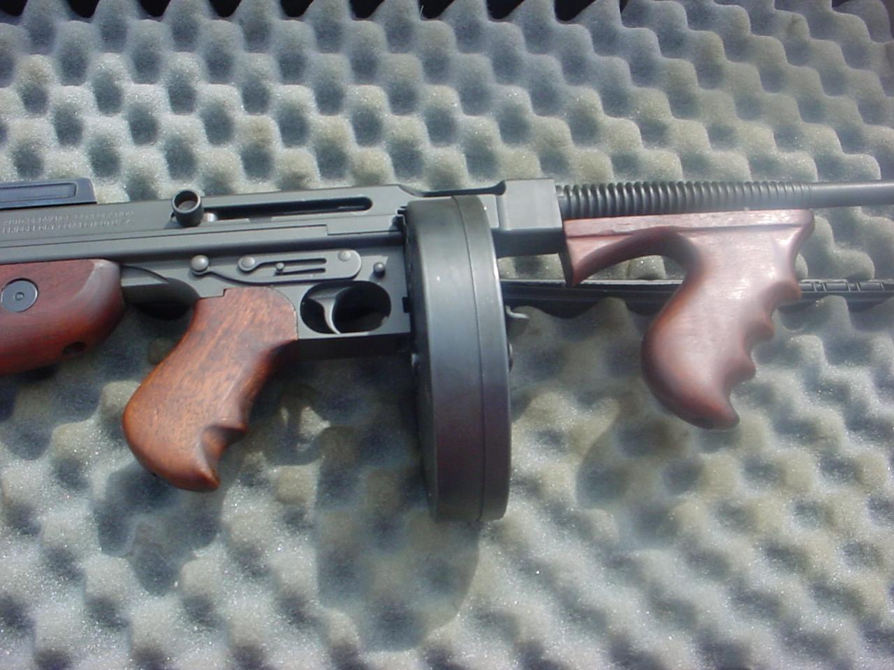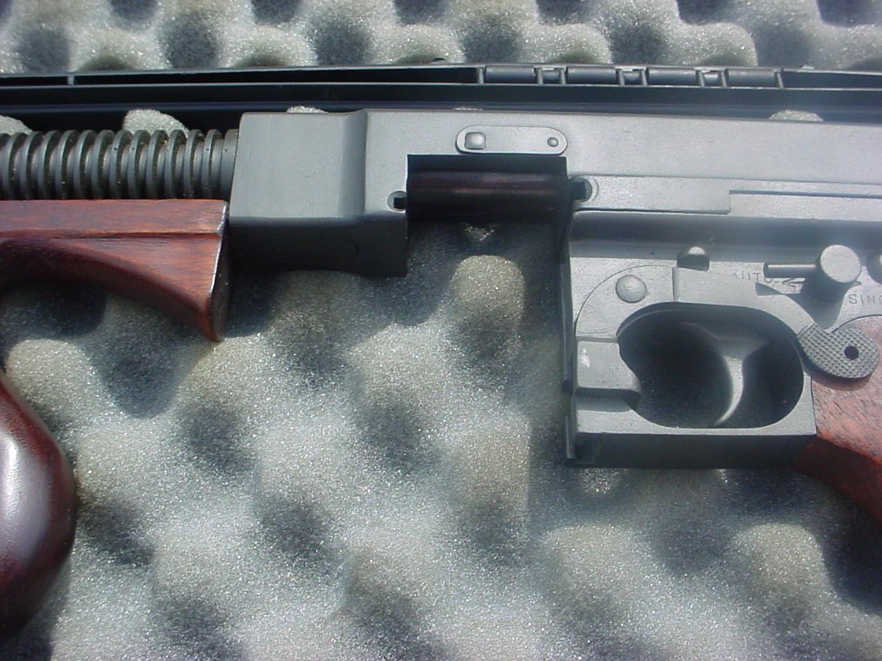 BRMCII Posted September 23, 2017 Report Share Posted September 23, 2017 I have a fully transferable M1 slotted for a drum, which is the only alteration, done by an unknown person/shop sometime in the 1980s. Not a factory modification and the gun pictured has been reparkerized and not very long ago. Slotting for a drum is not a mod that is condoned by the Thompson enthusiasts who regard it as butchery. There are a number of them out there and they don't bring a premium due to being slotted for a drum along with the other alterations. I recall talking to a CII in the early eighties who was doing such conversions to M1s, along with Lyman rear sights and finned barrels to sell to people who wanted a Colt lookalike. At that time M1s were very cheap and plentiful so there was no concern over slotting them for drums and don't doing the other mods. FWIW Link to comment Share on other sites More sharing options...